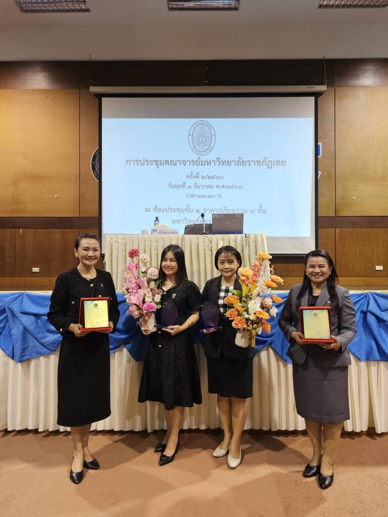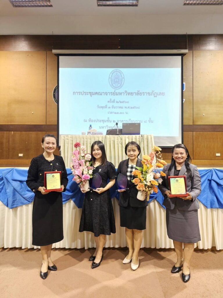 วันที่ 3 ธ.ค. 2568 คณะวิทยาการจัดการ มรภ.เลย แสดงความยินดีกับ ผศ.ภัทร์ณัฐสุดา จารุธีรพันธุ์ และ ผศ.รดาศา เนตรแสงสี ที่ได้รับแต่งตั้งเป็นผู้ช่วยศาสตราจารย์. พร้อมกันนี้ยังประกาศรางวัล ผศ.ดร.ลภัสรดา พิชญาธีรนาถ (อาจารย์ผู้สอนดีเด่น) และ อ.สกุลไทย ป้อมมะรัง (อาจารย์ที่ปรึกษาดีเด่น) ในการประชุมคณาจารย์ มรภ.เลย.