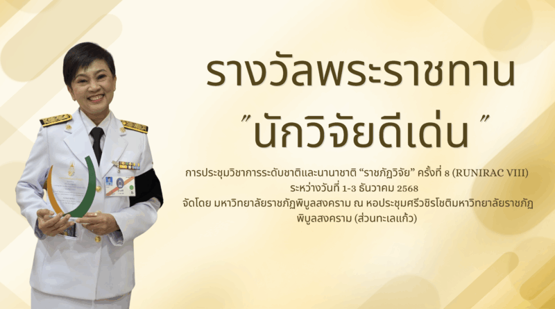 วันนี้ (1 ธันวาคม 2568) ผศ.ดร.วรินทร์ธร โตพันธ์ รองคณบดีฝ่ายวิชาการ วิจัยและนวัตกรรม คณะวิทยาการจัดการ มรภ.เลย ได้เข้ารับ โล่รางวัลพระราชทาน “นักวิจัยดีเด่น” รางวัลทรงเกียรตินี้มอบให้ในพิธีเปิดการประชุมวิชาการระดับชาติและนานาชาติ “ราชภัฏวิจัย” ครั้งที่ 8 (RUNIRAC VIII) ซึ่งจัดโดยมหาวิทยาลัยราชภัฏพิบูลสงคราม ระหว่างวันที่ 1-3 ธันวาคม 2568 การรับรางวัลดังกล่าวเป็นเครื่องยืนยันถึง ความมุ่งมั่นและความเป็นเลิศด้านงานวิจัย ของคณะวิทยาการจัดการ และมหาวิทยาลัยราชภัฏเลย