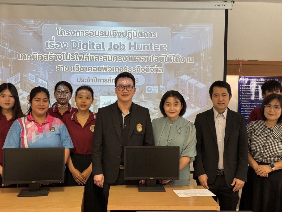 Skills ที่โลกการทำงานปี 2026 ต้องการ 10 มีนาคม 2569 ณ ห้องปฏิบัติการคอมพิวเตอร์ 19306 คณะวิทยาการจัดการ มรภ.เลย ดร.สัญชัย เกียรติทรงชัย เปิดโครงการอบรมเชิงปฏิบัติการ “Digital Job Hunter” ประจำปี 2568เสริมเทคนิคสร้างโปรไฟล์และสมัครงานออนไลน์ให้นักศึกษาคอมฯ ธุรกิจดิจิทัล ได้งานทำจริงในยุคดิจิทัล วันนี้สาขาคอมพิวเตอร์ธุรกิจดิจิทัล มรภ.เลย จัดเต็มกับเวิร์กชอป Digital Job Hunter